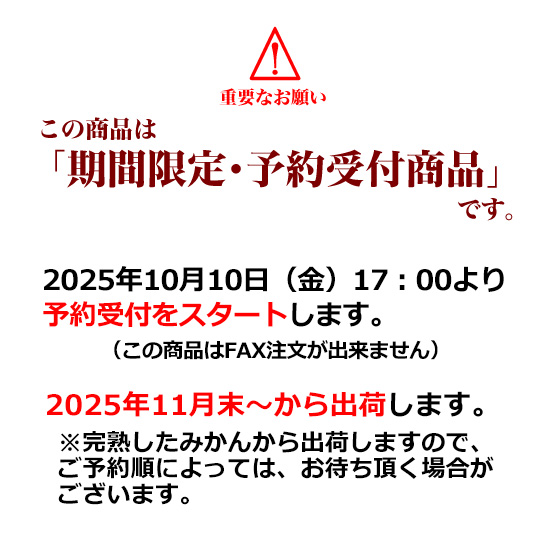 10月10日(金)から予約受付を開始し、天候にもよりますが「12月上旬ごろ」から出荷をスタートします。