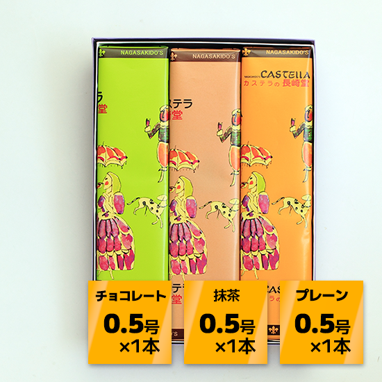 カステラ詰合せ0.5号 3本(プレーン1本/抹茶1本/チョコ1本)