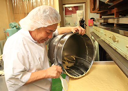 移り変わりが激しい今の世の中、伝統的な食べ物の味付けさえも新しい世代の口に合わせて変わっていく時代。そんな中にありながらも、この琴海堂では修行した時代に習得した、30年前の、古き良き長崎の「長崎カステラ」を焼き続けているのです。